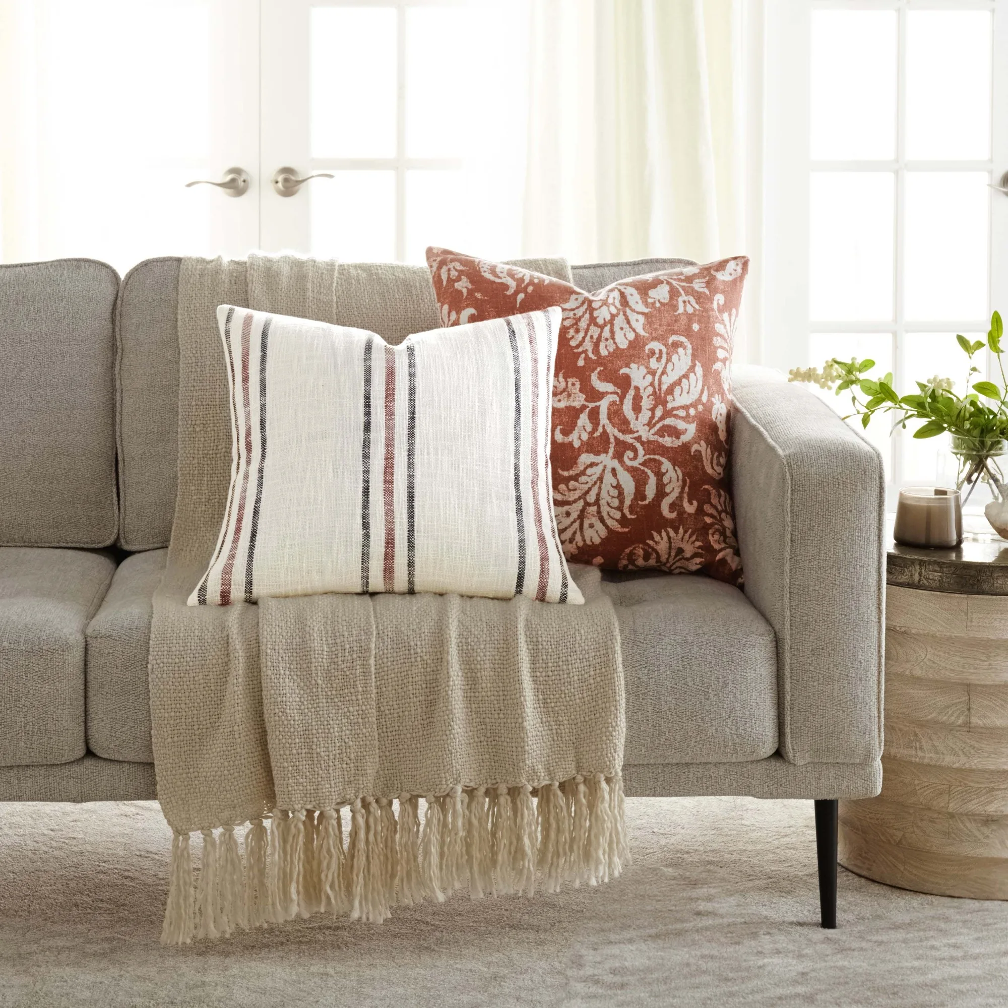 Pillow Cover Material: 100% Cotton Slub; Pillow Insert Material: 100% Cotton Cover, Polyester Fill