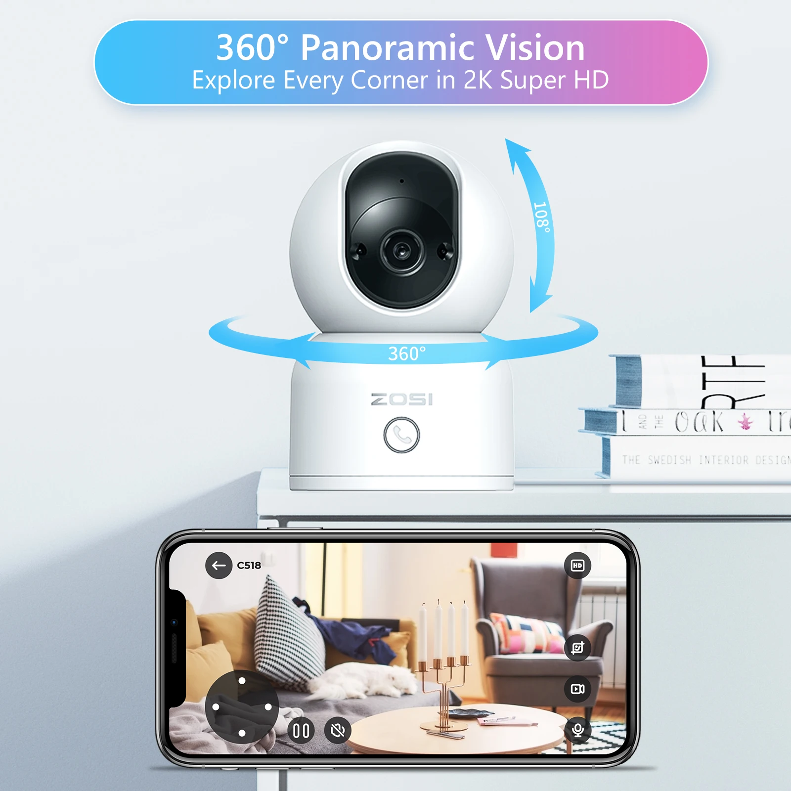 360° Panoramic view let you to monitor every part of your home, ensure that no corner goes unnoticed